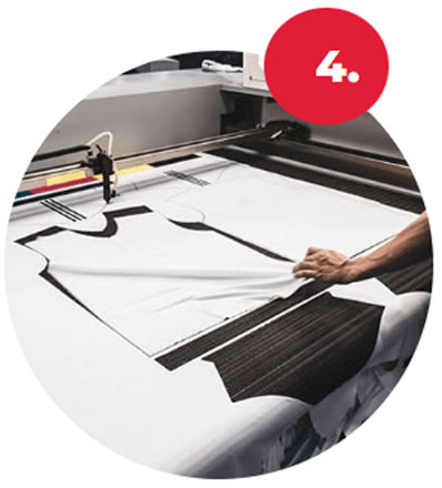 After sourcing, the fabric is cut into panels based on the patterns. Then, depending on the client's requirements, these panels undergo printing or embroidery.